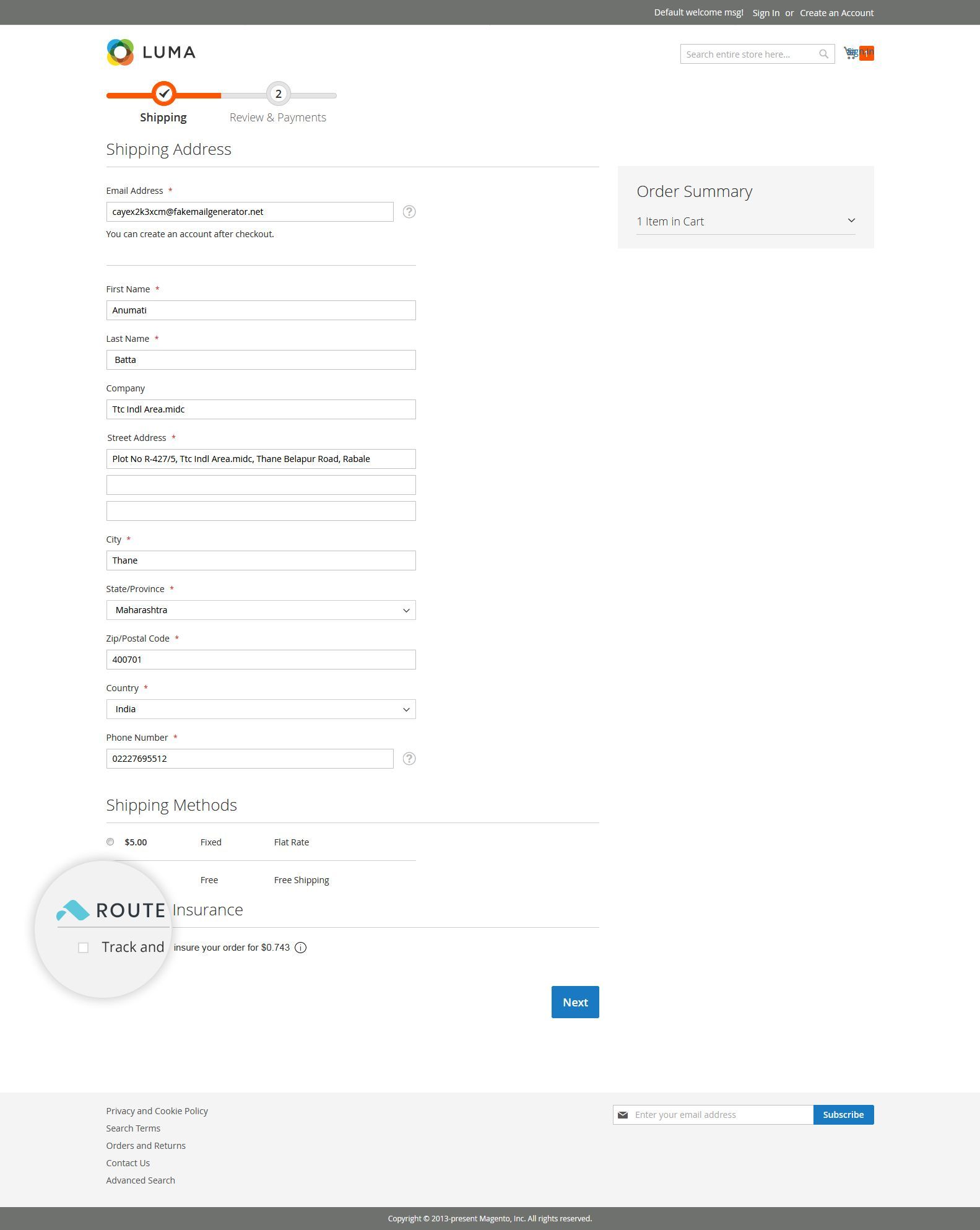 The Route Shipping Insurance option simply sits on your checkout page, adding a layer of 3rd party trust to your site while improving your customer's shopping experience.