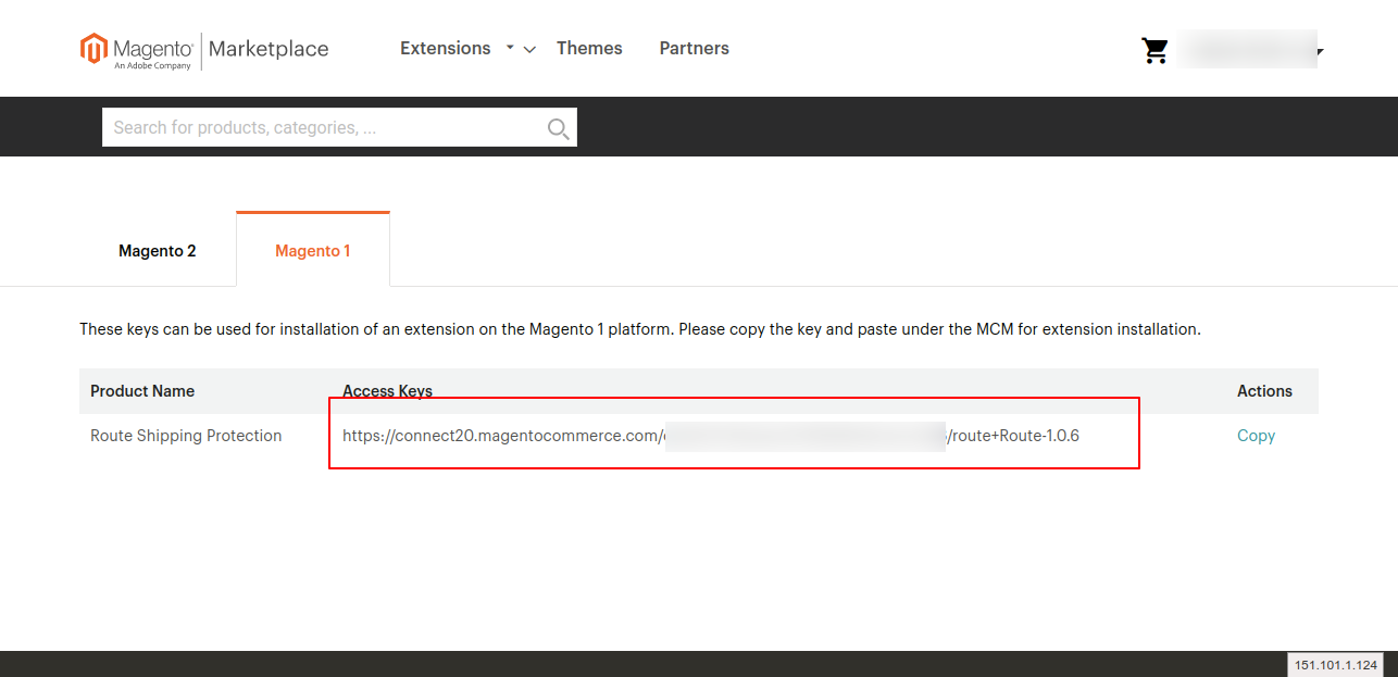After purchase our free extension from Magento Marketplace, copy the access key referring to our module.